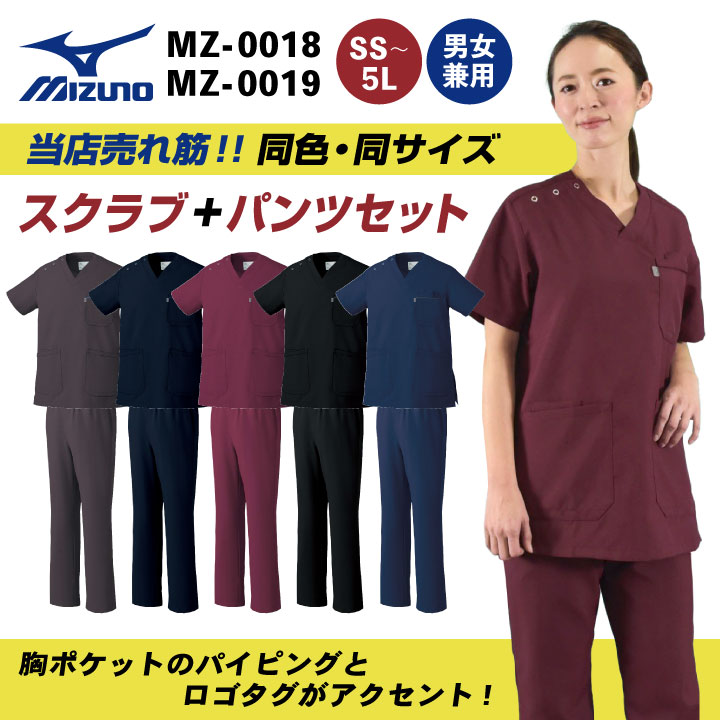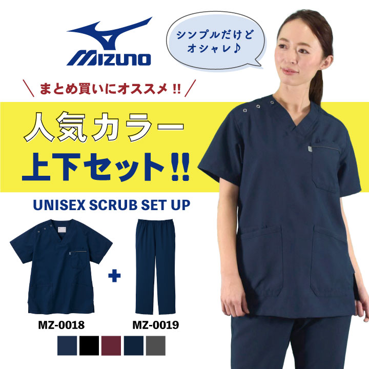 [スクラブ上下セット]ミズノ MIZUNO スクラブ [MZ-0018 MZ-0019] 白衣 医療 レディース メンズ おしゃれ ユニフォーム ナース 看護師 医者 介護士 トップス 半袖 シンプル S M L 大きいサイズ チトセ ct-mz0018-setup