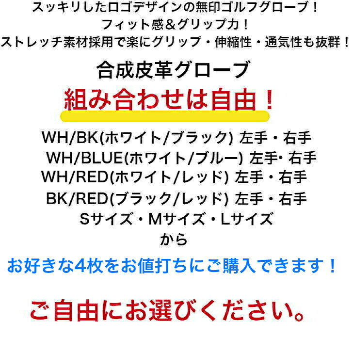 左右着用まとめ買い!!メンズ 合成皮革 ゴルフグローブ練習用の手袋ならこれがおススメ!シンプルな無印デザインのゴルフグローブ 左右WH/BK WH/BLUE WH/RED BK/REDS(21-22cm) M(23-24cm) L(25-26cm)から お好きな4枚をご購入ください!