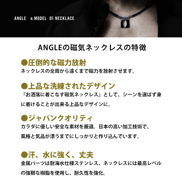 【トップアスリートの間で話題の!】磁気 ネックレス ANGLE e.MODEL 01 NECKLACE アングル メンズ レディース プラチナ ブラック 黒 磁石 磁力 ネックレス 耐海水使用 筋肉 肩こり 筋肉の回復 筋肉のハレほぐれ リラックス 五十肩 ギフト 父の日 敬老の日 ゴルフ 野球