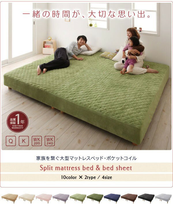 商品名連結ベッド ワイド 2台 セット 2人 3人 4人 家族 つなげる 連結 分割 ファミリー 親子 脚付き マットレスベッド ボトムベッド 足付 ベンチ ソファー パッドシーツ付き ヘッドレス ヘッドボードなし ローベッド ロータイプ フロア 低床 低い ルンバ 土台 北欧 おしゃれ モダン アンティーク商品バリエーションポケットコイル タオル セット 幅210 脚30cm全バリエーション商品説明コイルマットレスベッドサイズ(マットレス部のみ)Q:約160x195x20cm(SS+SS)K:約180x195x20cm(SS+S)WK200:約200x195x20cm(S+S)WK240:約240x195x20cm(SD+SD)脚:8cm、15cm、22cm、30cm脚の太さ:直径6cm【ベッド材質】木脚、天然木、2.2mmコイルスプリング(コイル数/SS:224、S:256、SD:352、D:416)、Q:448K:480WK200:512WK240:704ウレタンフォーム、防音フォーム、フェルト、不織布、ポリエステル100%張り地【生産国】中国【梱包サイズ】<脚8cm、15cm、22cm>Q:約81x98x42cm、2台K:約81x98x42cm、98x98x42cmWK200:約98x98x42cm.、2台WK240:約121x98x21cm、4台<脚30cm>Q:約95x98x42cm、2台K:約116x98x42cm、95x98x42cmWK200:116x98x42cm、2台WK240:128x98x20cm、2台、120x98x20cm、2台【重量】Q:46kg、K:50kg、WK200:54kg、WK240:65kg※各サイズ・重量は概算になります。