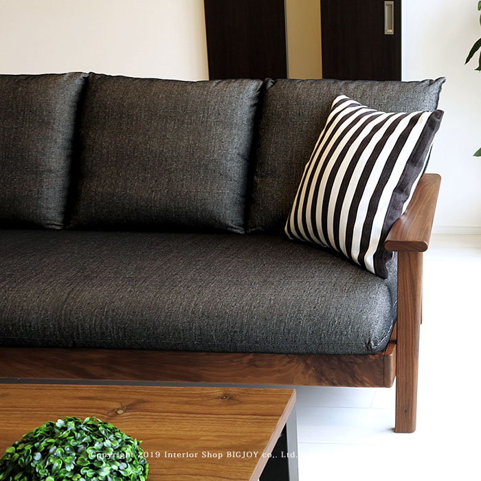 ウォールナット無垢材の3人掛けソファ ウォールナット無垢材を使用した木製フレームの3人掛けソファ(幅170cm)。